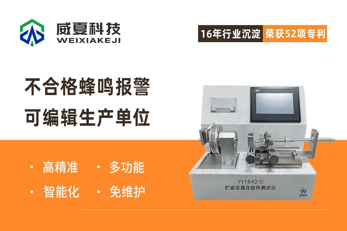 貯液容器連接件測試儀是一種用于檢測貯液容器連接件性能的重要檢測儀器。在貯液容器的醫(yī)療器械中,連接件的質(zhì)量和可靠性直接影響著醫(yī)療器械系統(tǒng)的安全運(yùn)行。因此,使用高質(zhì)量的測試儀器對(duì)連接件進(jìn)行檢測是非常重要的威夏科技將為您介紹貯液容器連接件測試儀的重要性以及其功能和應(yīng)用。